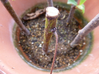 ちょっと分かりにくいですが、アンズの実生苗です。