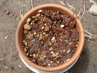 秋に食べた巨峰の種を一粒、とっておいたものをまきました。