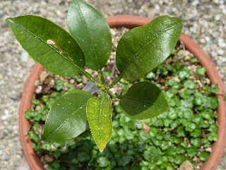 なんて名前か知らないですが、ポンカンの鉢に雑草で緑のジュウタンが出来てちょっと綺麗になりました。